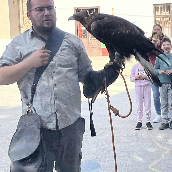 Iskolánkban kedden megemlékeztünk az Állatok világnapjáról. A hozzánk érkező hivatásos solymász Fuszonecker Gergő egy Harris héjával egy Szirti sassal, valamint két Weimari vizslával ismertette meg a gyerekeket. A bemutatót az alsó és felső tagozatosok egyaránt élvezték.